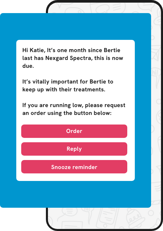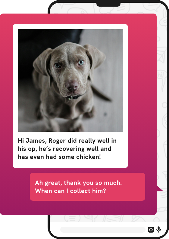 Easily send follow-up messages after consults or medication is dispensed. Share how-to videos, datasheets or pet health info automatically.